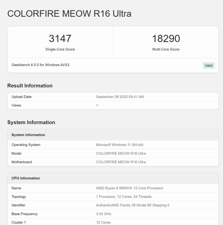 七彩虹MEOW R16 Ultra作为一款带有着“Ultra”名号的高端机型,在核心配置上面采用了当下最新型号搭配,AMD Ryzen 9000系处理器+NVIDIA RTX 50系独显,尤其是R9 9850HX这颗12核心的处理器,七彩虹MEOW R16 Ultra应该算是市面上率先搭载了该型号的机型了,接下来就看看其表现如何。