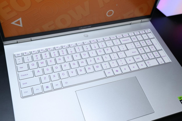 C面键盘的手感按到底部之后不发软,回弹很干脆,键程也比较长,综合手感不错,带有小键盘区域,方向键为正常尺寸也没有凸出于键盘区域,保持了七彩虹游戏本在键盘区域方面优异的设计水平;触摸板面积较大,点按精准。