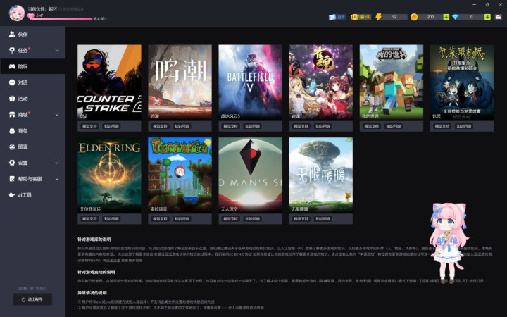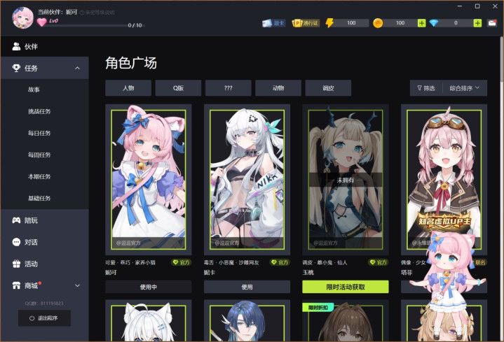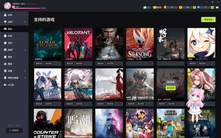逗逗游戏助手拥有众多的二次元AI桌宠,打开逗逗游戏助手软件后自动呼出,更多皮肤可充值或签到得积分以获得。