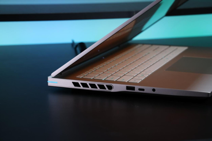 整机的主配色为银白色,纤薄机身厚度仅为19.9mm~21.9mm,并且作为一台16英寸屏幕的游戏本,整机重量不到2.3KG,算是同屏幕尺寸游戏本中较为轻便的。