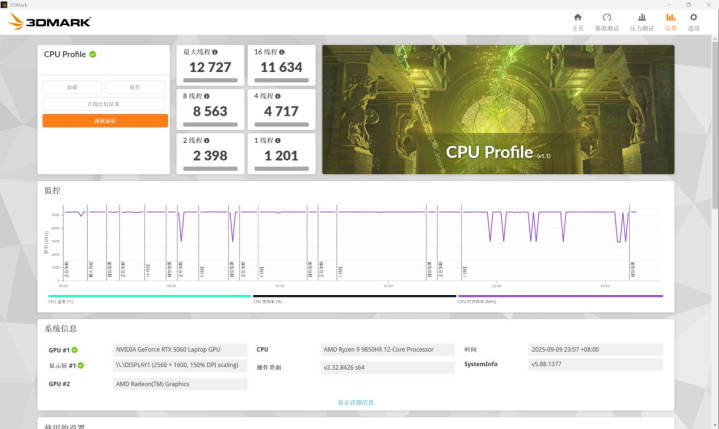 CPU Profile单线程1201分,全线程12727分;