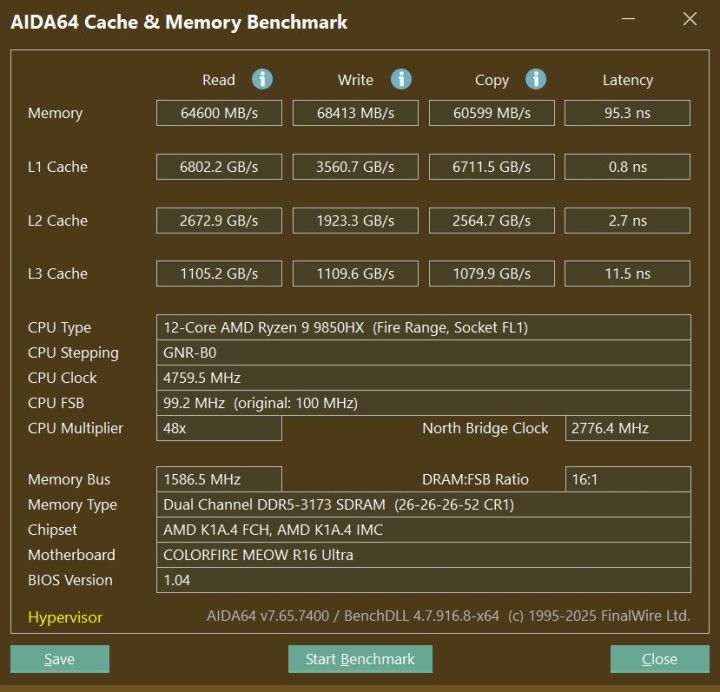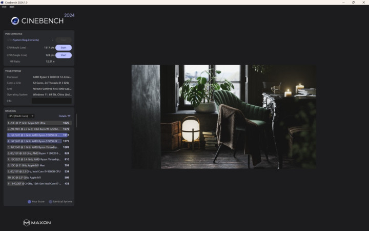 从第一部分对外观的介绍时应该就能看出,七彩虹MEOW R16 Ultra并非一款只注重性能的传统游戏本,不过Zen5架构的高能效比依然可以让R9 9850HX发挥出非常可观的性能表现,12个纯大核24线程威力还是不容小觑的,单核性能也很强势。